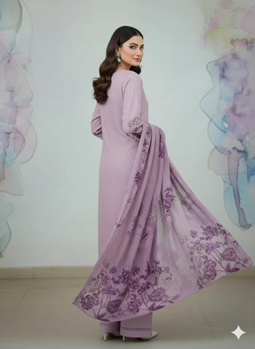 💜 Soft lavender lawn suit with elegant print